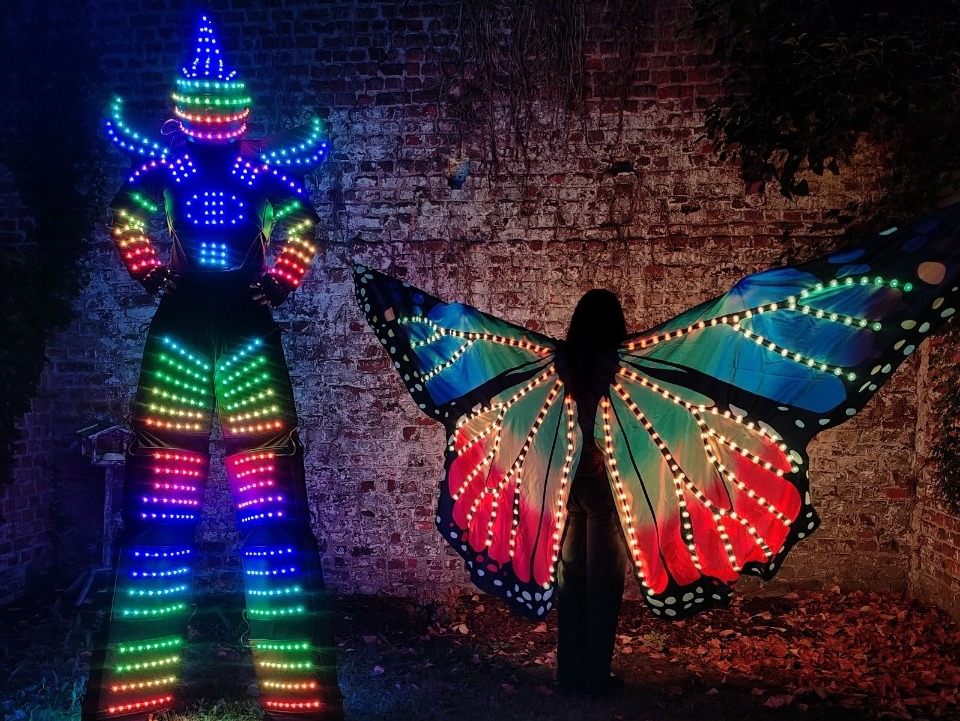 Laat je publiek betoveren door een spectaculaire LED-beleving die licht, muziek en beweging samenbrengt in één adembenemende show. Onze LED-animatie is een visueel feest waarbij perfect gesynchroniseerde dansers het podium (of de straat!) tot leven brengen. Gehuld in futuristische LED-kostuums bewegen zij feilloos op het ritme van de muziek, terwijl hun outfits oplichten en pulseren op elke beat. Het resultaat? Een hypnotiserende choreografie die jong en oud moeiteloos meesleept. Maar daar stopt het niet. Deze act gaat verder dan dans alleen. Verwacht een unieke mix van circustechnieken, volledig uitgevoerd met verlichte props en materialen. Denk aan sierlijke bewegingen, indrukwekkende tricks en een constante stroom van visuele verrassingen die de grenzen tussen kunst en technologie doen vervagen. Alsof dat nog niet genoeg is, zorgen onze elegante steltenlopers voor extra hoogte en grandeur, terwijl een majestueuze LED-vlinder van bijna vier meter groot het publiek letterlijk en figuurlijk doet opkijken. Een magisch moment dat gegarandeerd indruk nalaat.